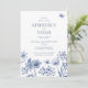 Modern blue wildflowers wedding invitation