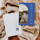 This save the date invitation features elegant calligraphy and simple sans serif typography font with an arch shape photo on a blue yonder background and QR code for a clean minimalist and modern look, which is a beautiful way to inform about your upcoming wedding. Announce to your family and friends you are getting married with this invitation and add a personal touch with beautiful pictures of you and your soon-to-be better half. The simplicity of this design adds a touch of elegance to your wedding. It works well with many wedding themes and definitely a great addition to your wedding. Just customise the names and wording in a few easy steps and personalise the invitation card with your photo of the happy couple and replace the QR Code with yours.