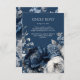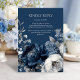 Modern Blues & Grey Floral Wedding RSVP Card