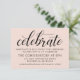 Modern and chic blush pink wedding "Celebrate" card features a stylish black typographic design with bold calligraphy script accents and elegant custom text that can be personalised with your wedding reception information.