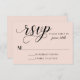 Modern and chic blush pink wedding RSVP cards feature a stylish black typographic design with bold calligraphy script accents and elegant custom text that can be personalised with your response due date.