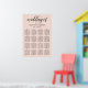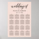 Modern and chic blush pink wedding seating chart poster features a stylish black typographic design with bold calligraphy script accents and elegant custom text that can be personalised with a monogram of the bride and groom names, names of guests organised by their assigned table numbers.