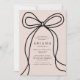 This elegant blush pink and black graduation party non photo invitation features a chic black doodle bow with graduation party details in classic typography on a pretty pink background. Shop this modern collection for coordinating graduation save the date announcements and graduate mailing stickers.