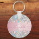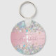Modern Blush Holographic Faux Glitter Monogram Key Ring