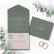 Customizable modern blush pink and moss green QR Code All In One Invitation. Includes RSVP with a scannable QR code that you can link to your wedding website. Generate your own unique QR code via the "personalize this template" feature on the product page. Add your URL to the area provided and a brand new QR code will generate on the design just for you.