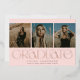 This modern three photo graduation announcement features elegant typography "graduate" in raised rose gold foil with three photos on a blush pink background. On the back there is invitation text for graduation party / open house which can also be deleted if not needed. Background and text colours are all customisable. This simple yet elegant design really allows your photos to shine by keeping the details minimal.