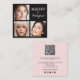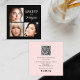 Blush pink business card with black typography and elegant script. Update qr code with your website, edit social media icons for your business and add 3 unique photos for your business. Message the designer for more customisation options.