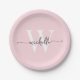 Modern Blush Pink Custom Monogram Name Script Paper Plate