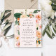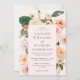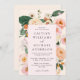 This is a romantic and modern blush pink and peachy floral wedding invitation. Using a design of bohemian and pretty pink and peachy florals and matching soft blush and creamy background colours, edit all of the text as required using the provided template.