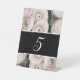 Modern blush pink floral wedding table number pedestal sign