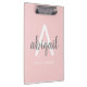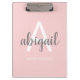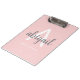Modern Blush Pink Girly Grey Monogram Name Clipboard