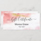 Modern Blush Pink Gold Glitter Agate Marble Certificate Gift Card.