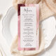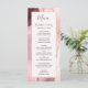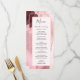 This elegant, modern wedding menu features a watercolor blush pink agate background trimmed with gold faux glitter. The text appears in elegant charcoal gray handwriting and copperplate fonts on a blush rectangle. The agate design is repeated on the reverse.