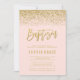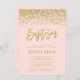 Modern Blush Pink Gold Faux Glitter Baptism Invite