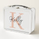 Modern Blush Pink Monogram Script Metal Lunch Box