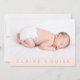Announce your baby girls arrival with this modern double sided photo collage birth announcement . The front features a large photo of your baby girl with a blush pink band at the bottom with the baby's name. The backside has a 3 photo collage with a blush pink background. All the important details are included including baby's full name, birth stats, birth date and parents names. Modern typography is easily customised.