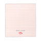 Modern Blush Pink Red Lipstick Kiss Personalised Notepad comes designed with lines to keep your note taking neater. Minimalist designed with pastel pink background with a girly chic red kiss on the lower centre. Name is in simple grey lettering.