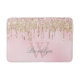Modern Blush Pink Rose Gold Glitter Drips Monogram Bath Mat
