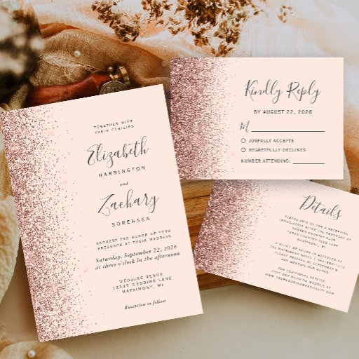Blush Pink Rose Gold Glitter Wedding SuiteDesigned by Akhates Designs