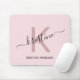 Modern blush pink script monogram name mouse pad