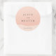 This is modern blush-coloured wedding sticker template, that will add a touch of elegance to your wedding party decor. Matching items including invitation suite and day-off stationery also available.