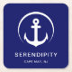 Chic and modern nautical-themed coaster for your boat that feature a white illustration of an anchor on a navy blue background. Personalise with your boat's name and location in minimal white typography.