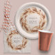 Modern bohemian natural pampas grass wedding day party plates. Stunning elegant script text and on trend botanical foliage. On trend rust terracotta backer colour.