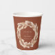 Modern bohemian natural pampas grass wedding day party cups. Stunning elegant script text and on trend botanical foliage. On trend rust terra-cotta burnt orange backer colour.
