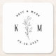 Modern Bohemian Wedding Monogram Square Paper Coaster