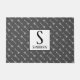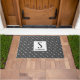 Modern white arrows pattern doormat with your personalised monogram letter and family name in black.