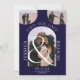 Modern boho arch 4 photos wedding navy blue and white save the date. A cool simple and minimalist layout with a bohemian desert vibe. Perfect for casual outdoors weddings.