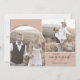 This modern boho arch salmon 3 photo engagement announcement card makes the perfect simple announcement card. The bohemian orange pink design features unique industrial lettering typography with minimalist vintage style. Personalise the front of the card with 2 photos and your names.