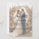 This elegant boho wedding style template invitation, features a handwritten script text with with a tinted photo overlay on the front, and a full colour photo on the back. Replace this sample photo with your own posed photo, and the tint will appear over the top of your photo. Available in print, as a digital download, or both!