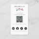 This sleek and professional business card not only showcases your contact information and logo but also features an easy-to-personalise QR code. Positioned prominently, this QR code can be quickly scanned to direct clients or colleagues directly to your online portfolio, website, or contact form, offering a seamless bridge between your physical and digital presence. Additionally, the card is adorned with stylish icons representing your active social media platforms—such as Facebook or Instagram.