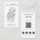 Modern Boho Black White Wavy Hair Style Floral QR Business Card