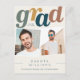 The perfect modern photo graduation announcement postcard for the boho graduate! Featuring "grad" in sage, mustard, blue lagoon, and terracotta typography against a beige background. You can easily choose two of your favourite photos on the front and another on the back!