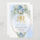Modern Boho Blue Floral Gold 90th Birthday Invite