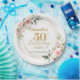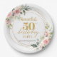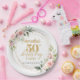 Modern Boho blush pink floral gold 50th birthday Paper Plate