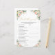 The design on the party game is attractive and very sturdy. It is made from heavy card stock. It is larger than it appears on line. Very happy with this product. The lettering on the this wedding game is large and clear. No need to wear glasses to read the questions.