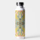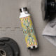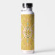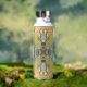A modern stainless steel water bottle featuring a bold symmetrical mandala-inspired pattern in earthy tones of sage, mustard, blush, and teal.