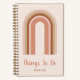 A modern to do notebook with a earth tone arch rainbow in pinks and browns. The editable title reads "things to do" in pink brush script font. Personalise by adding your name. Great for work, teachers, home and much more.