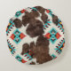 Modern Boho Southwest Cowhide Aztec Pattern Round Cushion