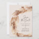 Modern bohemian natural pampas grass wedding save the date invitation. Stunning elegant script text and on trend botanical foliage in a contemporary teal, black, terracotta and natural beige colorway.