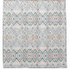 Modern and fun beachy boho vibe style shower curtain with teal, peach, and pale grey in a watercolor wash chevron and diamond pattern.