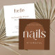 Minimal boho nail artist or technician business card with modern fonts and terracotta colour scheme. The retro font design reads 'nails' and 'hello' and adds a really trendy feel to this bohemian calling card design, perfect for your nails salon. You can customise this nails business card with your brand colours, logo and business details to make it your own.
