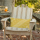 Modern mustard yellow outdoor lumbar pillow with an ethnic tribal print. Diagonal stripes and hand-drawn elements make this design stylish. Some triangles are filled with sun illustrations to add a sunny mood to the pattern. Mudcloth prints inspired this design.