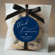 Modern Wedding minimalist Thank You Gifts Classic favour Round Sticker, in romantic script, little cute heart, with bride and groom signature and wedding date, navy blue theme.