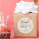 Modern Wedding minimalist Thank You Gifts Classic favour Round Sticker, in romantic script, little cute heart, with bride and groom signature and wedding date, in black and cream theme.