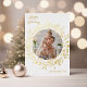 This elegant Christmas Holiday gold foil card features wildflowers silhouette wreath with a stylish script.