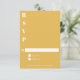 This modern RSVP enclosure card features a stylish mustard yellow background with bold white typography, making it easy for guests to respond. With checkboxes for "Accepts" and "Regrets" and a line for personalised details, it ensures a smooth RSVP process. The plain blue backside adds a pop of colour and sophistication. Ideal for any event that combines contemporary flair with classic elegance, this RSVP card is both functional and visually striking, setting the tone for an organised and memorable occasion.